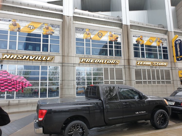 When we came out the sun was trying to break through and the temperature had gone up considerably. We passed the Bridgestone Arena where the local NHL team play.