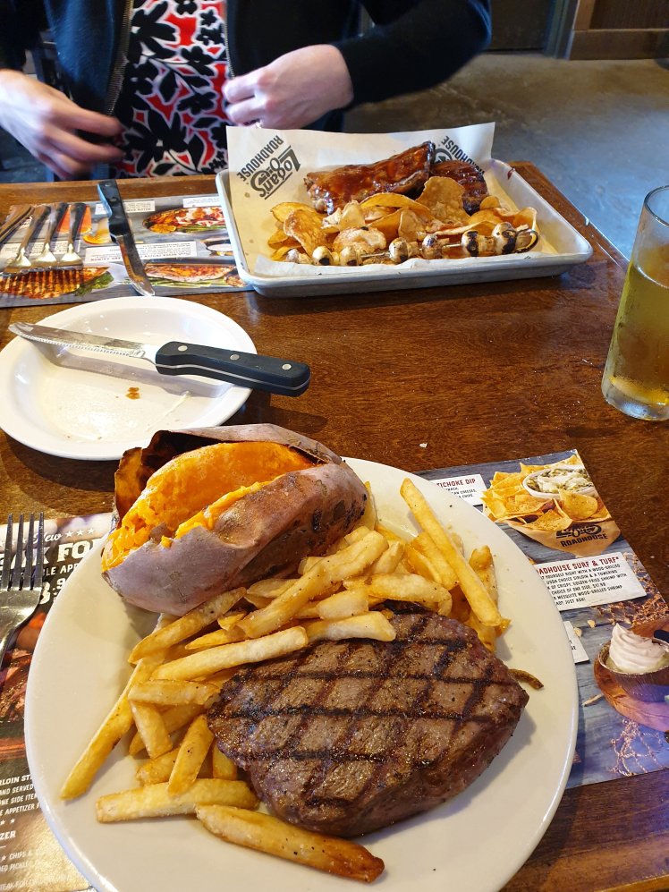 After a quick breakfast in the hotel room of donuts, banana and coffee we headed east of Nashville to the Lebanon Factory Outlets. It was only 23 miles away but Google took us a route avoiding jams. We arrived about 10.30am. It was very quiet which was great for getting around quickly. There were all the usual shops Nike, Gap, Sketchers, Van Heusen etc I bought some Sketchers and shirts and Pauline got Sketchers, shoes and trousers.For lunch we went to Logan’s roadhouse for steak, ribs and, chocolate brownie and ice cream.