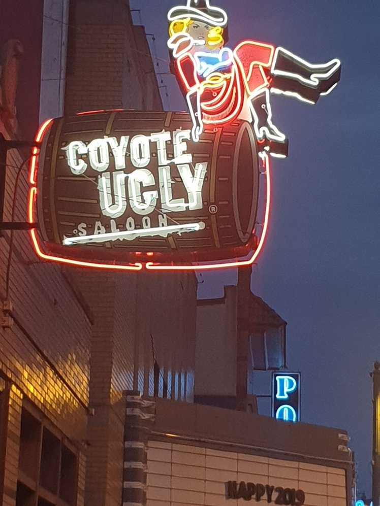 It was fairly quiet as it was early in the evening. The barmaid did a dance on the bar.Pauline was itching to have a go and I couldn’t stop her.After Coyote Ugly we walked up the street to take in more sites.