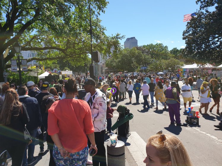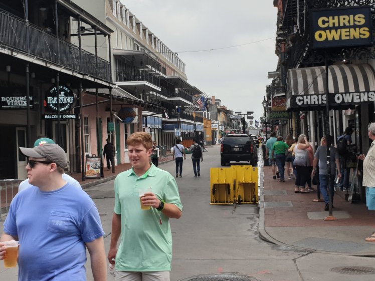 It’s only a 2.5 hour drive to New Orleans from Jackson but we had an early breakfast and were on the the road for 7.45am. We stopped once for a rest break on the drive down the I55 and arrived in New Orleans around 10.45. We decided to spend the day in The French Quarter which had a festival on. Parking was expensive $25.Our first port of call was a walk along Bourbon St.