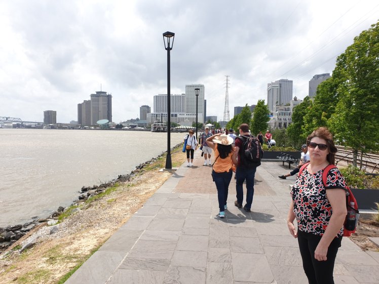 After our heavy session yesterday we had a lie in to recover. It was lunchtime when we drove into the city and parked up. We walked down Canal Street which is the main street that borders the French Quarter and the modern shopping and business district of the city.At the south end of Canal Street you come to Riverside Walk where there is a large outlet shopping mall and steamboats berthed at the quayside. Some of the boats are huge cruise steamers that will travel up the Mississippi through Memphis and St Louis. We decided to take one of the day tours. The tour lasted about 2.5 hours with a guide narrating the history of Nes Orleans and the battles over the city betwen the British, French and the US.